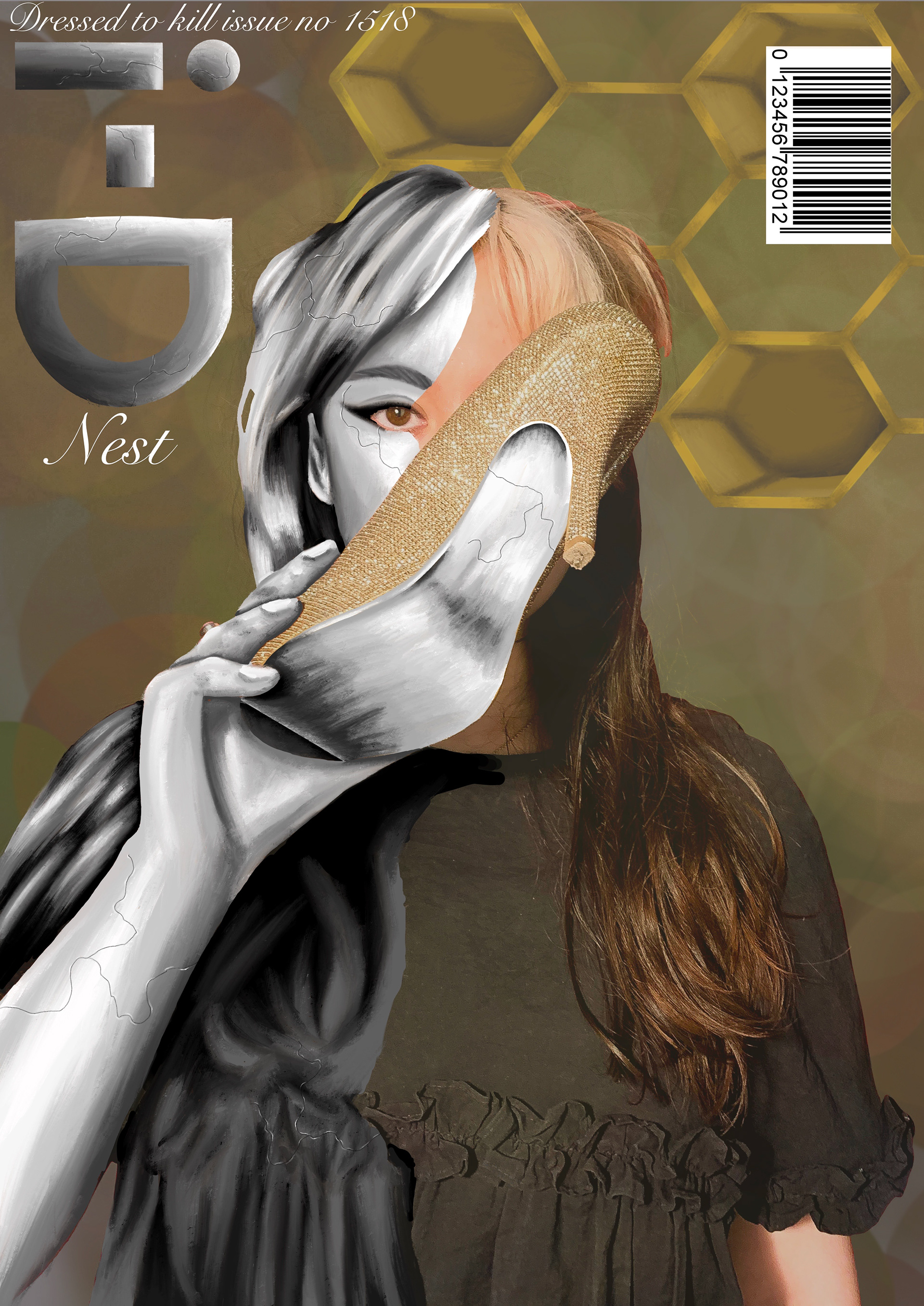 I was tasked with creating four front covers and four double-page spreads for i-D magazine in my college education. We had the theme of wasps and dressed to kill. This was so that the magazine was unique whilst marrying the different structure of the two themes together effectively. I added my own theme of statues as this complemented the style that I wanted to present as this also paired well with the dressed to kill theme.